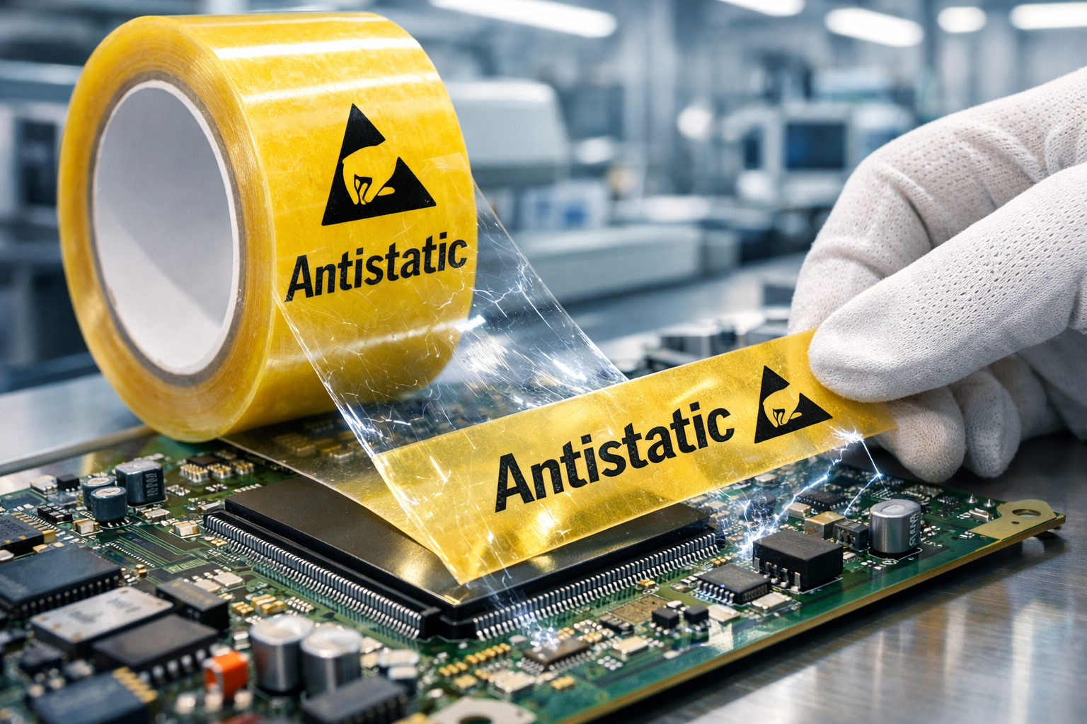 A ragasztószalag antisztatikus szerek speciális adalékanyagok, amelyeket ragasztószalagokhoz alkalmaznak, hogy megakadályozzák a statikus elektromosság felhalmozódását. Az elektronikai gyártásban a statikus kisülés károsíthatja az érzékeny alkatrészeket, ronthatja a termék minőségét és növelheti a gyártási költségeket. Az antisztatikus anyagok ragasztószalagokba történő beépítése hatékony módszer ezeknek a kockázatoknak a csökkentésére és a működési megbízhatóság javítására.