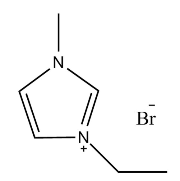 A molekula egy imidazolium kationból áll, etil- és metil-szubsztituensekkel, valamint egy bromid-anion. Ez a szerkezet elősegíti az erős ionos kölcsönhatásokat és a hidrogénkötést, hozzájárulva a poláris és bizonyos nem poláris oldószerekben való jó oldhatóságához. Polaritása vízzel és számos szerves oldószerrel, például metanollal, etanollal és acetonitrillel is elegyíthetővé teszi.