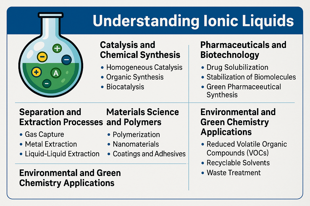Az ionos folyadékok (IL) a kémiai vegyületek átalakító osztályaként jelentek meg a modern iparban. A teljes egészében ionokból álló sók viszonylag alacsony, gyakran 100 °C alatti hőmérsékleten folyékonyak maradnak. Egyedülálló tulajdonságaik – beleértve az elhanyagolható gőznyomást, a nagy termikus stabilitást, a hangolható oldhatóságot és a kivételes ionvezetőképességet – vonzó alternatíváivá teszik a hagyományos szerves oldószerek és reagensek helyett. Az elmúlt két évtizedben az ionos folyadékok a niche-laboratóriumi kutatásból az ipari alkalmazások széles skálájává bővültek, befolyásolva a katalízistől az energiatárolásig, a gyógyszergyártásig és az anyagfeldolgozásig.